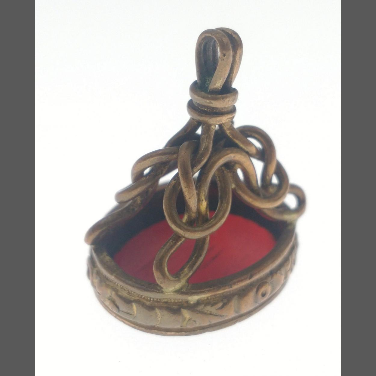 A vintage INTAGLIO pendant set with a red coloured stone 35mm x 20mm, gross weight 11.1g approx