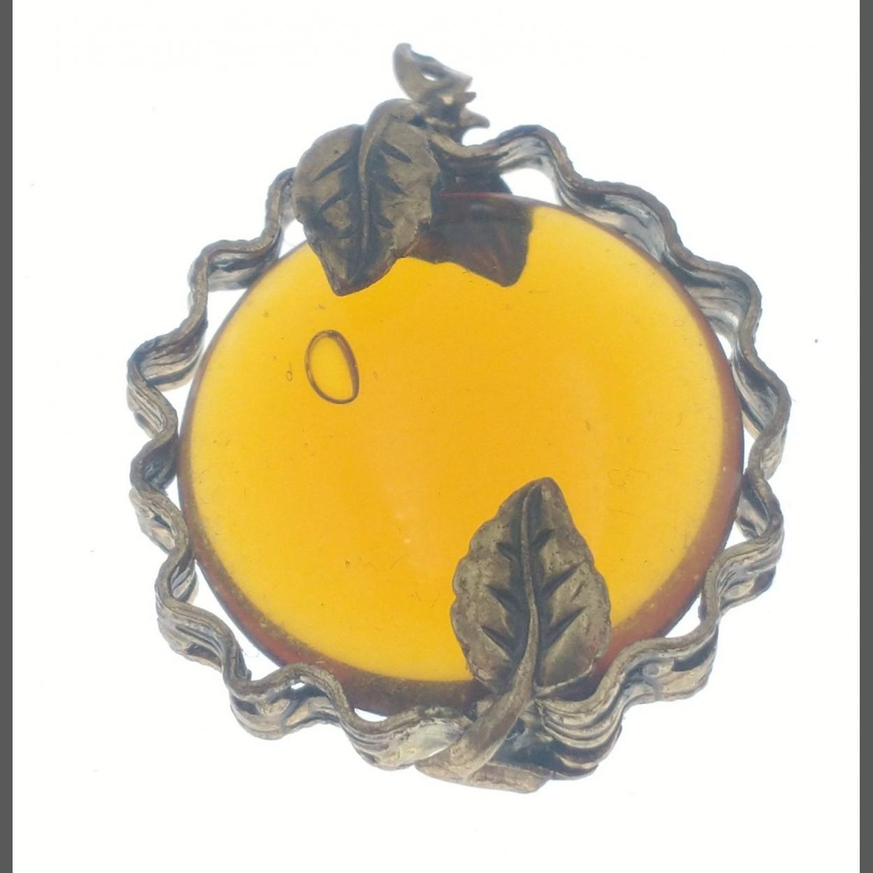 A vintage pendant with an amber bead 20mm x20mm set in a yellow metal surround held in with 4 leaves, total size 25mmx 25mm, gross weight 4.3g approx