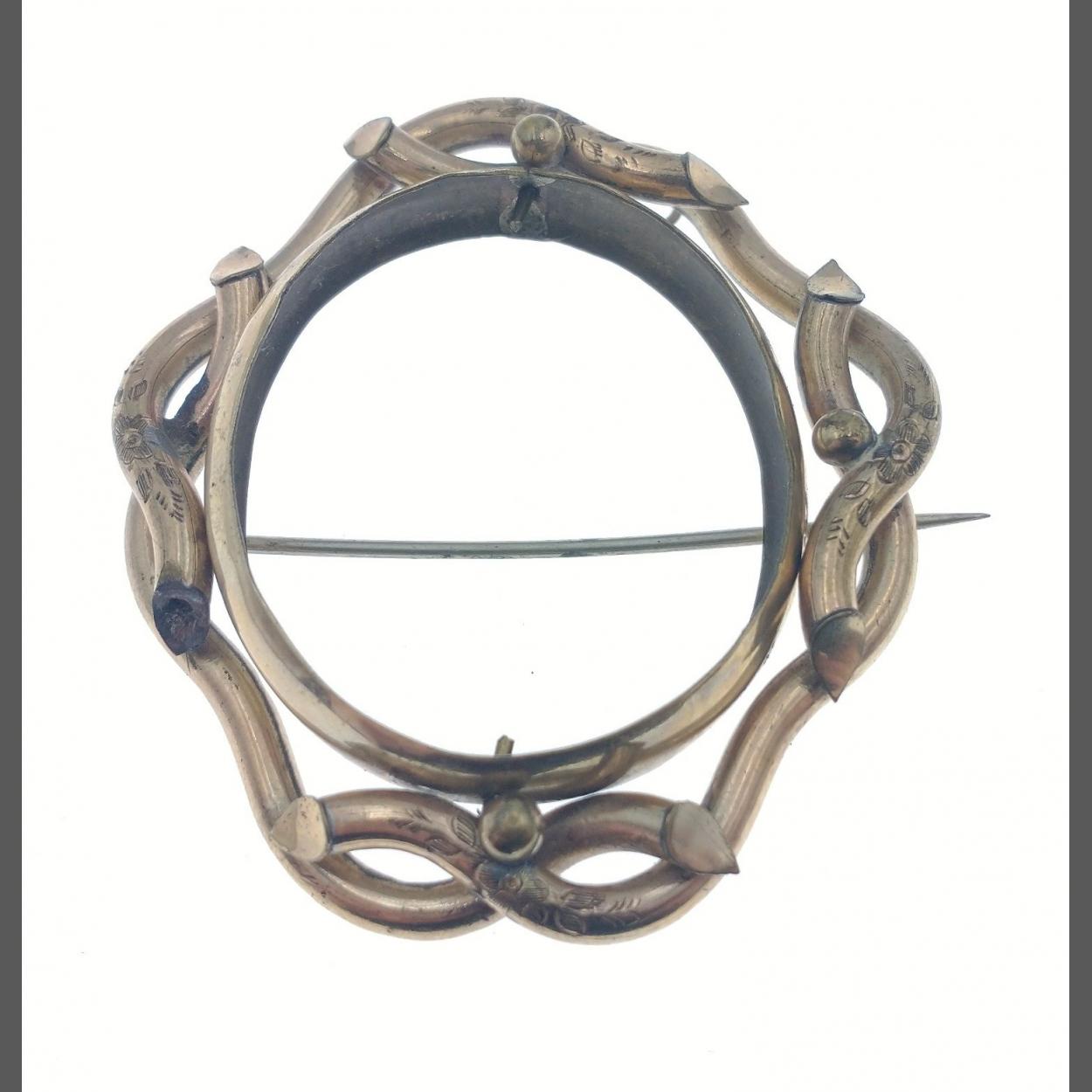 A large unmarked yellow metal plaid brooch with some nice engraving, 60mm x55mm, weight 20.6g approx