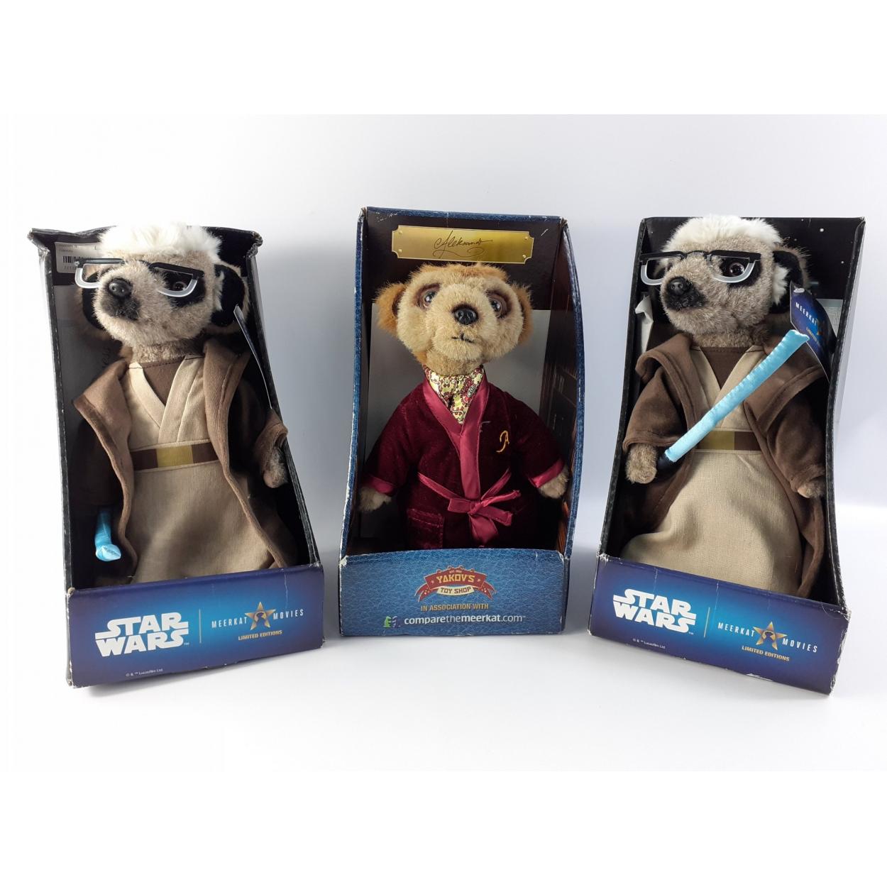 SIMPLES ! Three MEERKAT figures with boxes. Two STAR WARS Sergei as Obi Wan Kenobi and Aleksandr