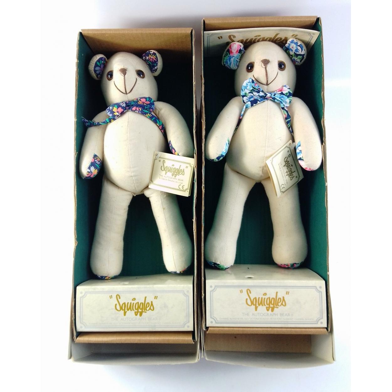 Two SQUIGGLES THE AUTOGRAPH BEARs boxed and in excellent condition.