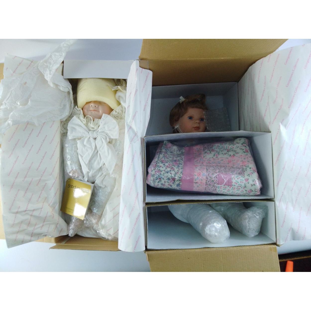 In boxed excellent condition. Two large boxed BARBARA PRUSSEIT collectors dolls. Gifts of Heaven and Country Quilt Babies collections.