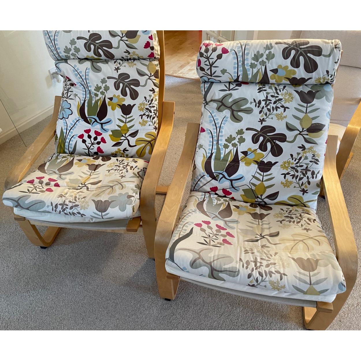 A pair of colourful ex-IKEA leafy padded comfy rocking/bouncy chairs - can you just not see you and the MISSUS bouncing-away on these this WINTER?