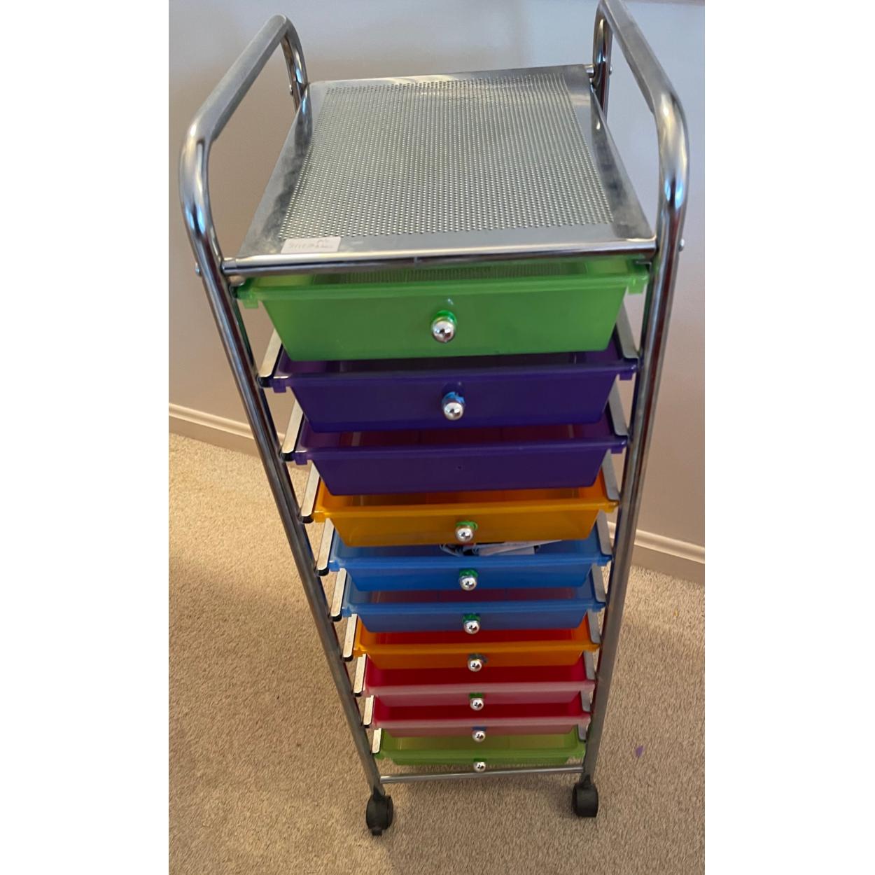 TIDY OFFICE TIDY MIND! - A PUKKA multicoloured A4 sized potable office storage tray system - this glides around on 4 castors - stands 3.5ft tall approx, you can guess the rest!