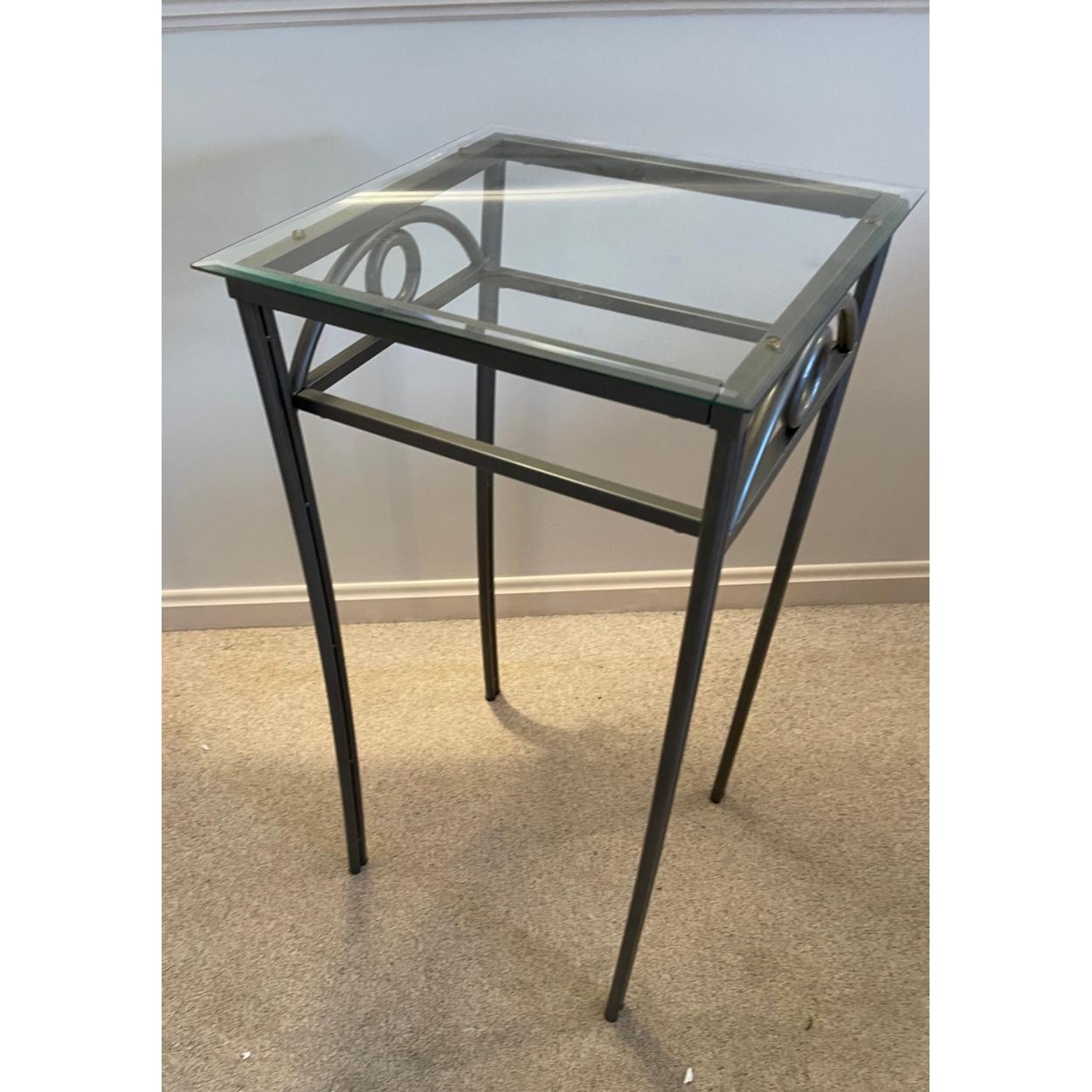 A wire-work glass topped side table 2.5ft tall approx
