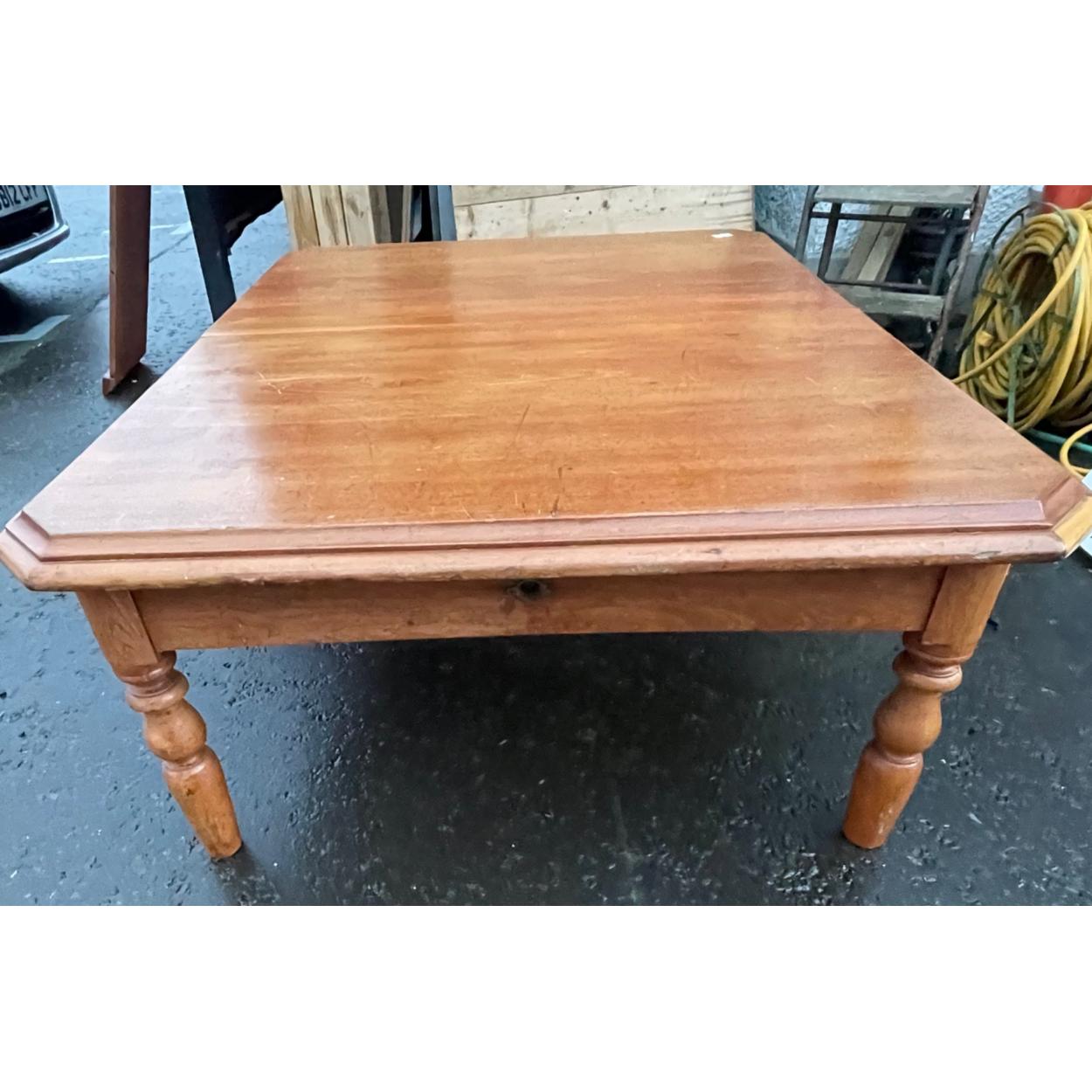 A LARGE low coffee table (dining table size) which extends with an additional leaf and comes with original winder! 6ft when extended, 5 ft un-extended x 3fr wide approx