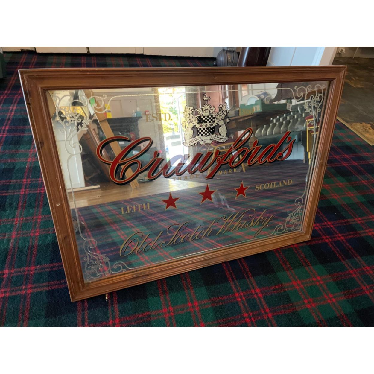 A CRAWFORDS of LEITH Old SCOTCH WHISKY pub mirror- dimensions 88cm width x 64cm height approx