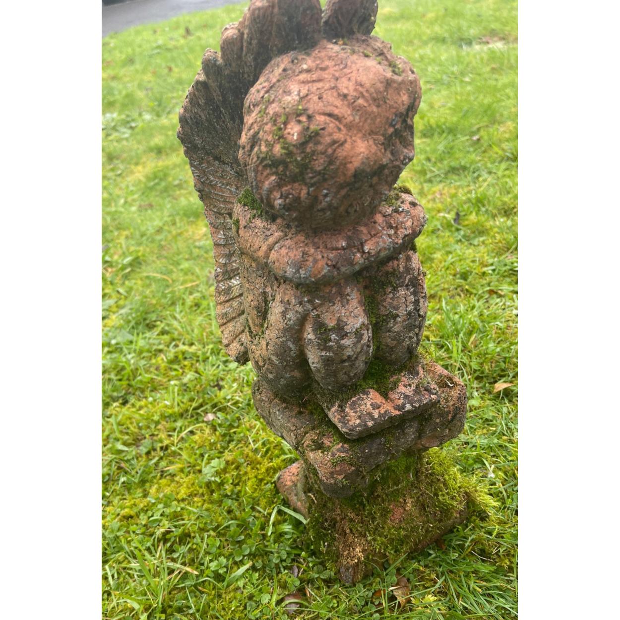 A red sandstone effect stone garden cherub! - stands 40 cm tall approx - GIVE ME A HOME PLEASE!