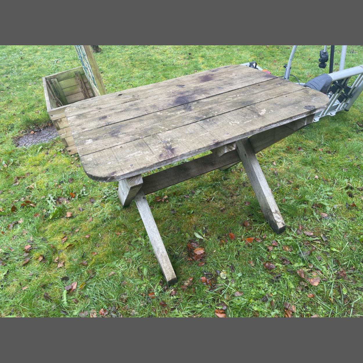 HANDY! A low wooden garden plank table - dimensions 2ft long x 18" depth x 18" height approx