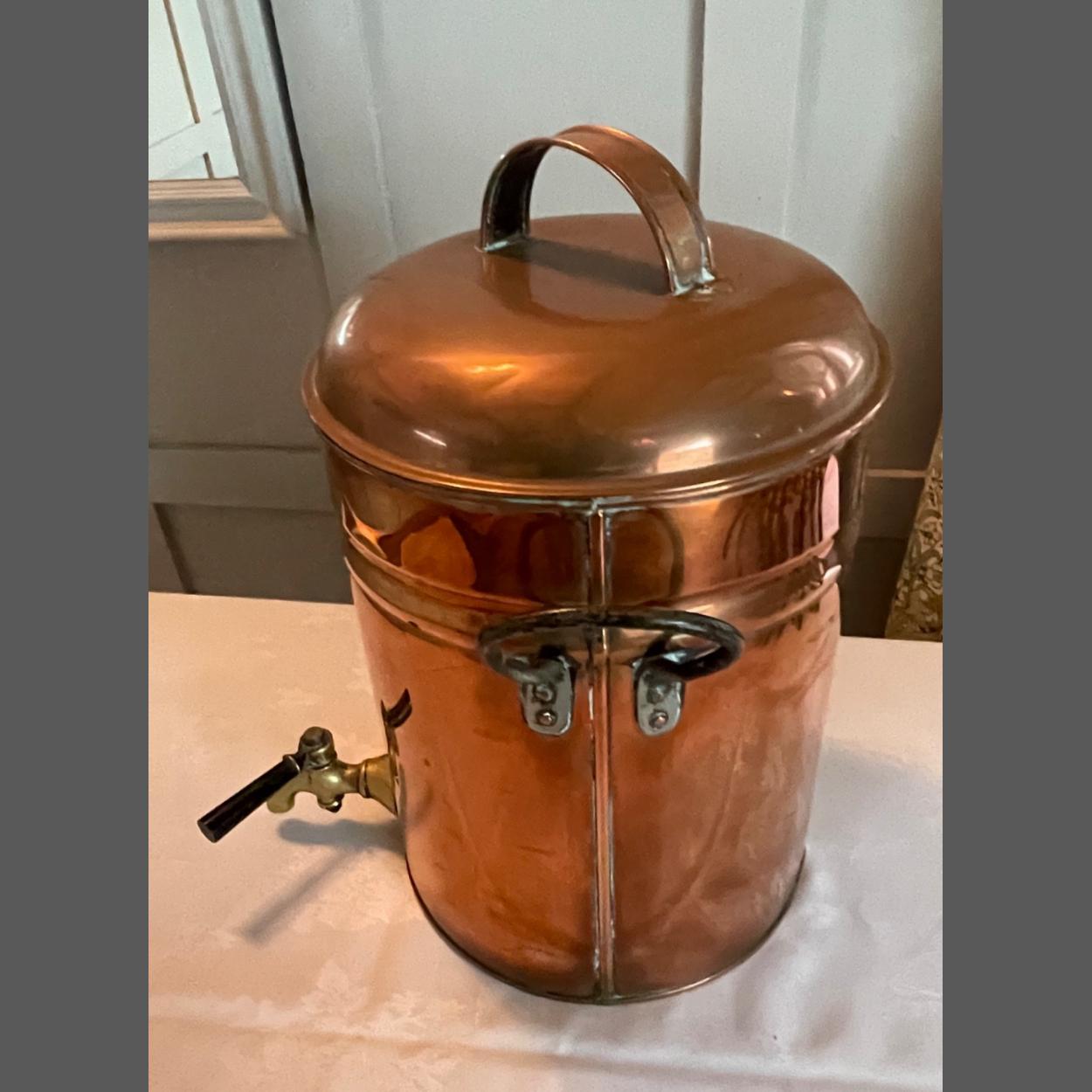 An ANTIQUE copper urn with brass tap stands 15" tall - this item came from an old INN