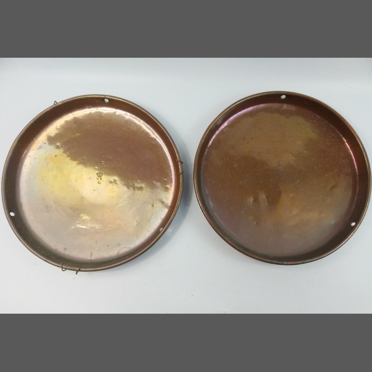 Two superb large and heavy Victorian stamped copper scale pans which had latterly been mounted for wall display. Great Victorian VR Crown stamps with L and R marks. Each 31cm across and they display very well.