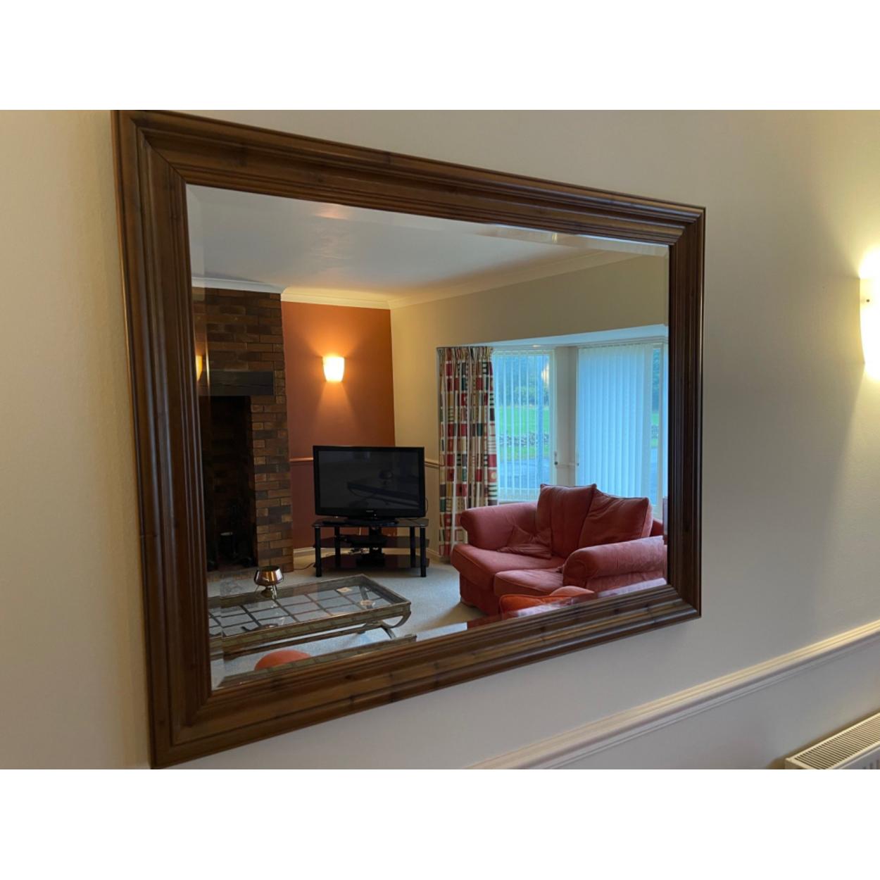 A large rectangular wooden framed wall mirror - dimensions 3ft width x 2ft height approx