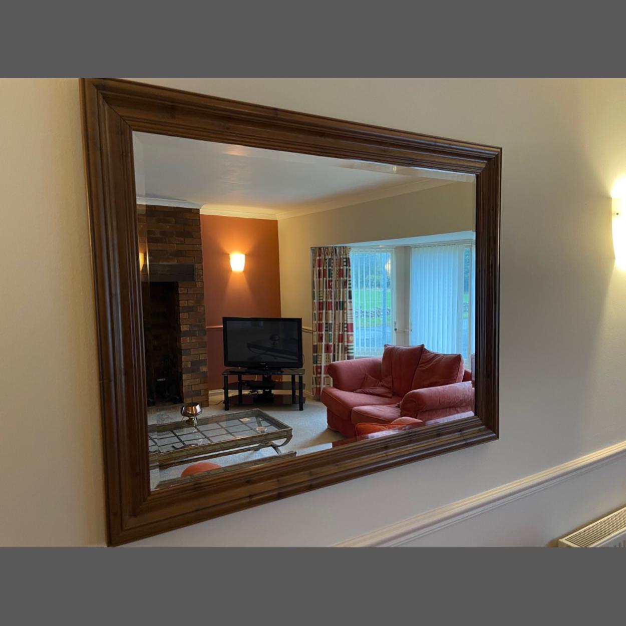 A large rectangular wooden framed wall mirror - dimensions 3ft width x 2ft height approx