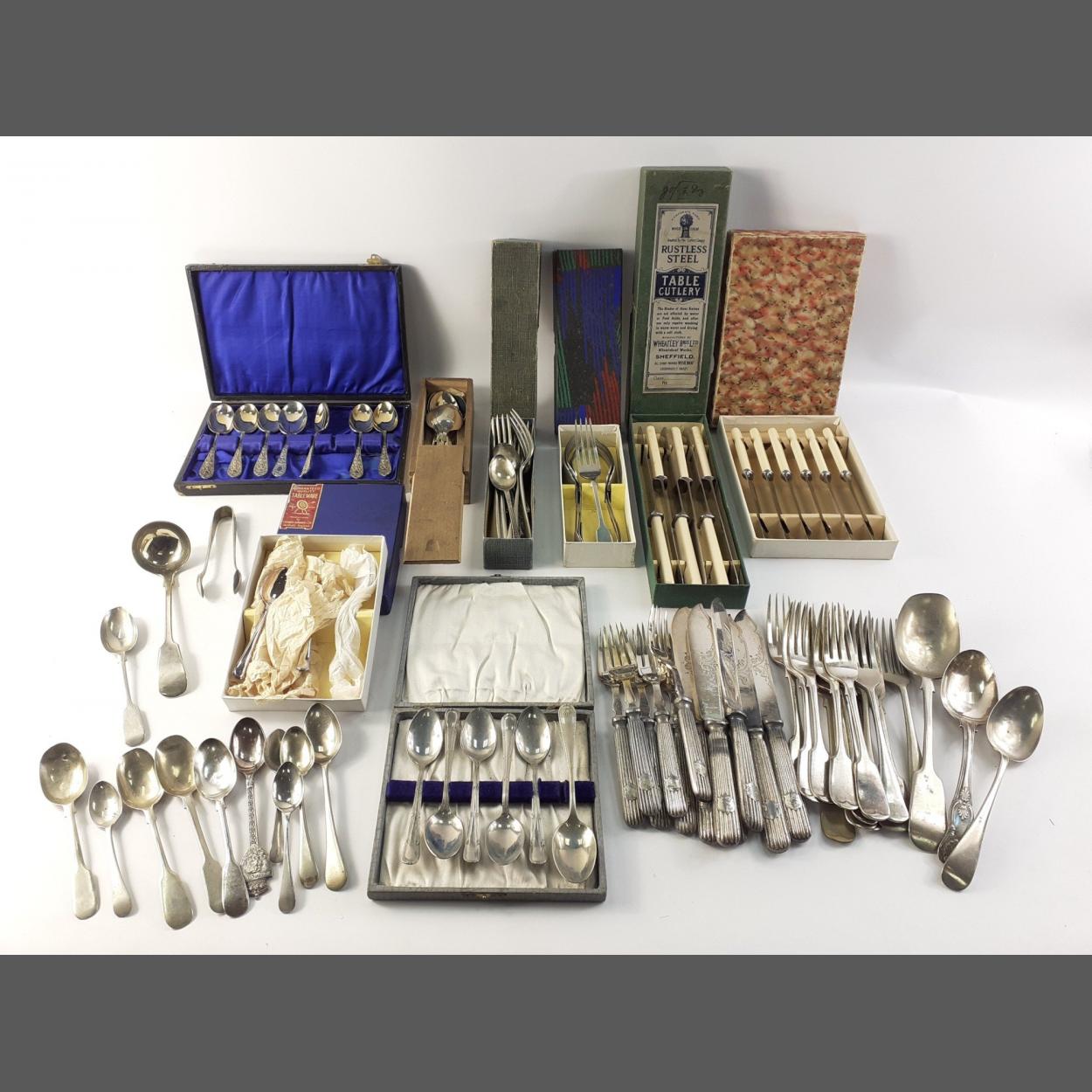 A nice selection of good quality EP silver plated cutlery, some cased. Useful lot.