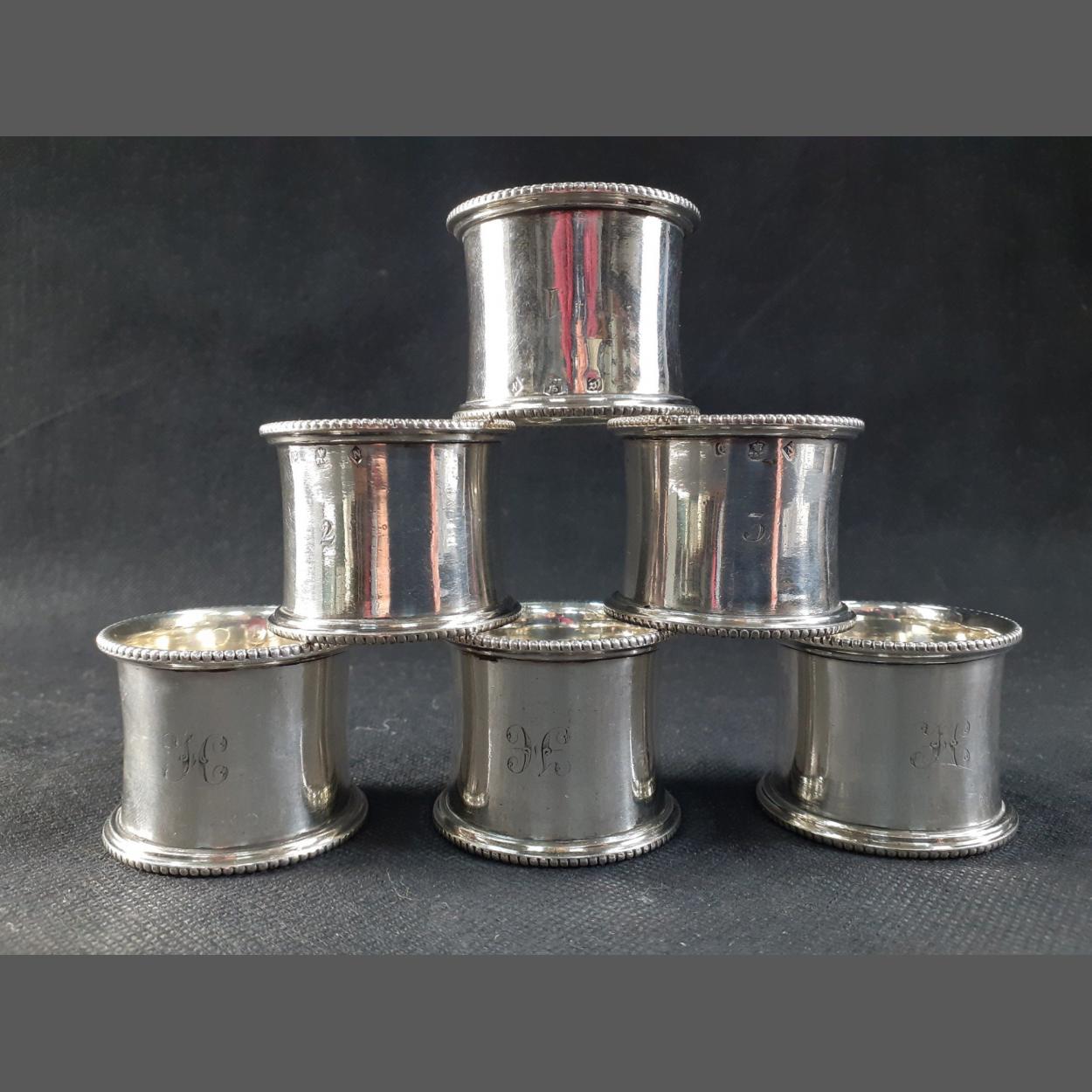 A set of six beautiful monogrammed silver plated late Victorian numbered ELKINGTON napkin rings 35mm x 45mm dia. In excellent condition.