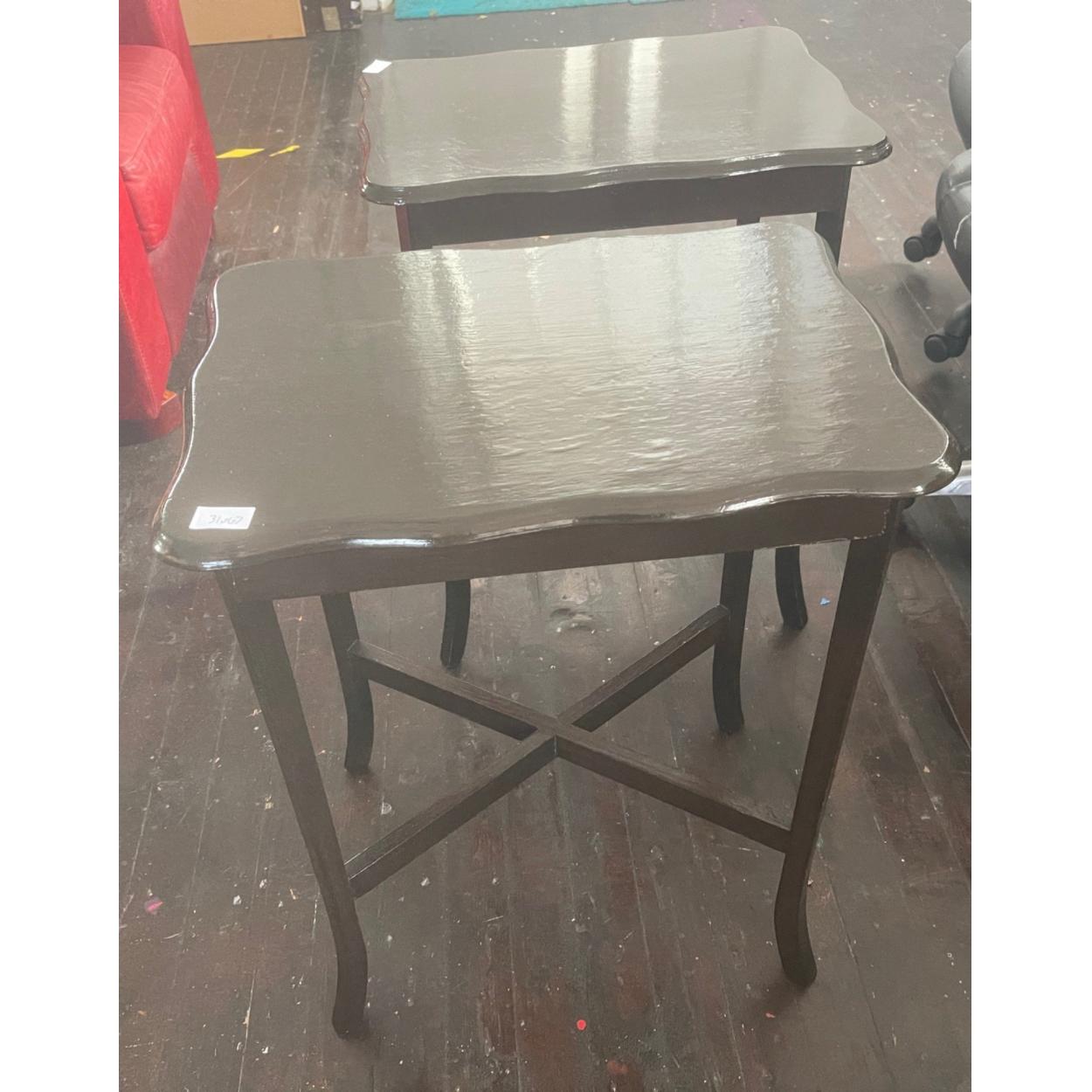 A shelved dark wood table with 4 shelves - in nice condition - 2.5ft height x 18" x 15" approx