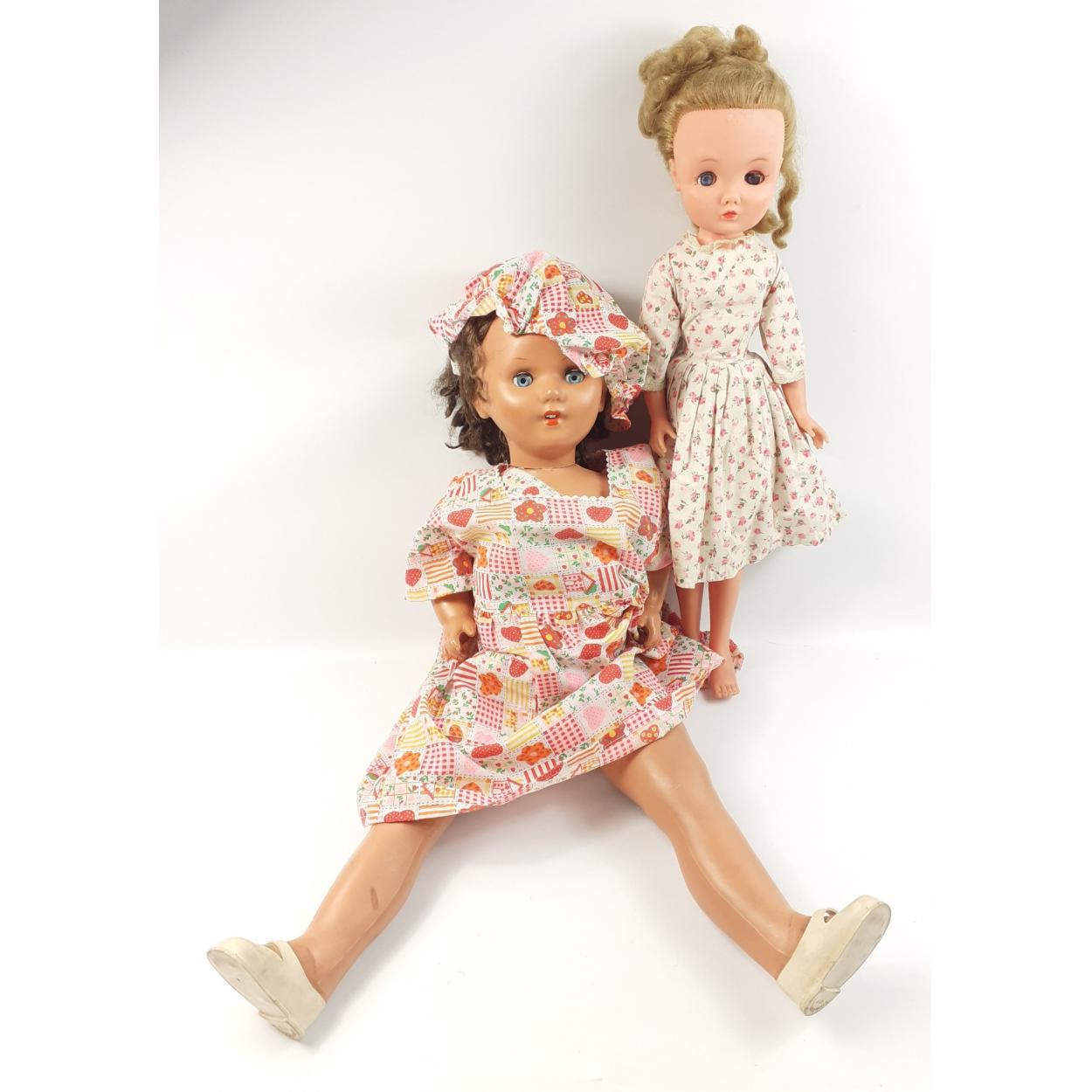 A vintage SAROLD hard plastic doll 24", plus a bisque headed soft-bodied doll (47cm), and others