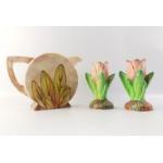 A ROYAL ART POTTERY jug and a pair of TULIP flower vases by SHORTER & SON