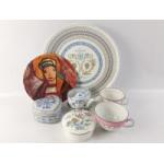 A mixed lot of China to include 2 WEDGWOOD Kutani Crane trinket dishes, one with a lid, a ROYAL TUSCAN commemorative plate for the wedding of Prince Charles and Diana 1981(28cm dia), a HEINRICH WINTERLING Michel de La Porte 2005 plate (19cm dia), a blue and white invalid's cup, etc