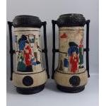 A pair of CYPLES OLD POTTERY Embosa ware vases (179 reg. no 748574) with geisha decoration, standing 28cm high approx, some small chips on both pieces