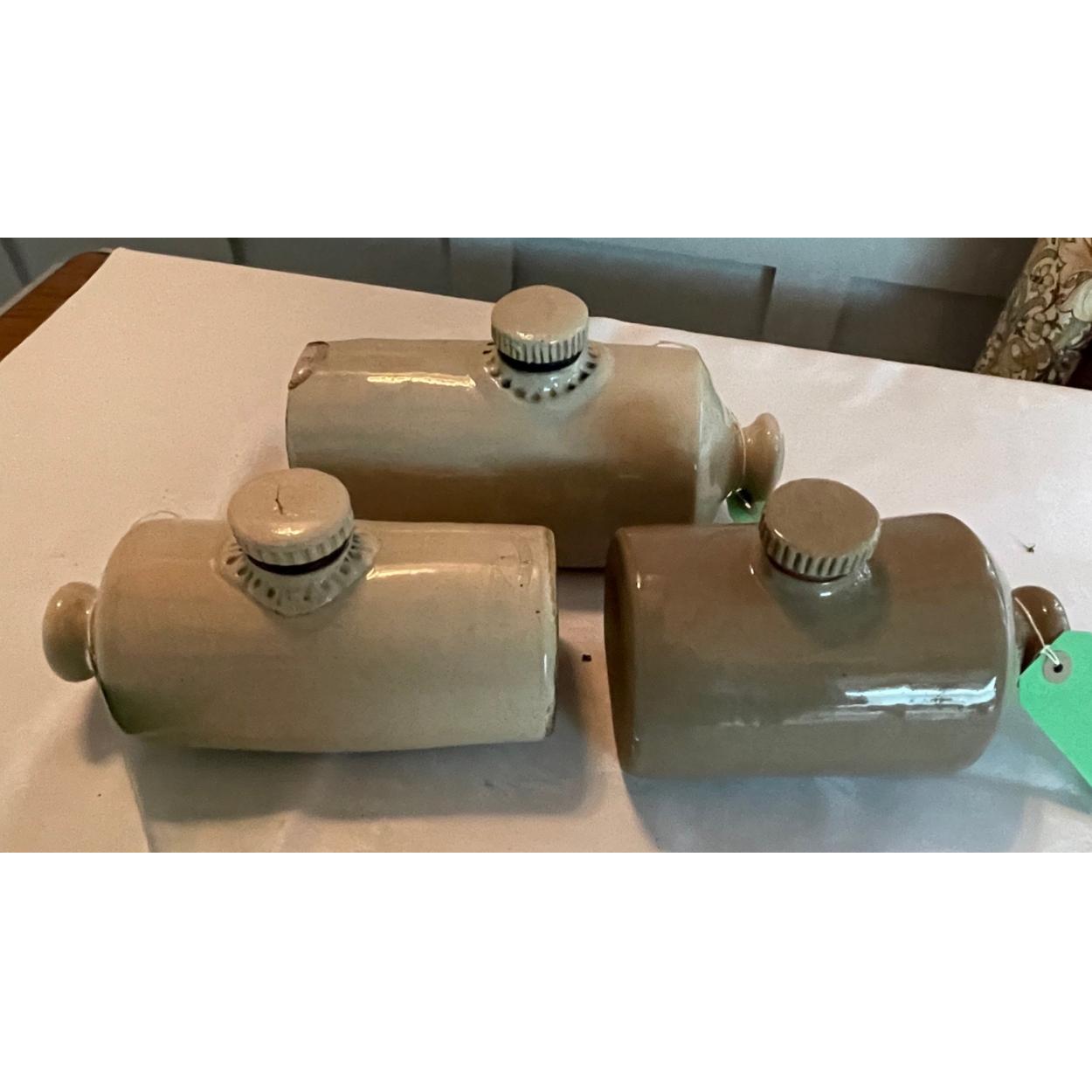 ANTIQUE! A TRIO of STONEWARE hot water pigs - the largest stamped (indistinct) maker BOVEN???? pottery