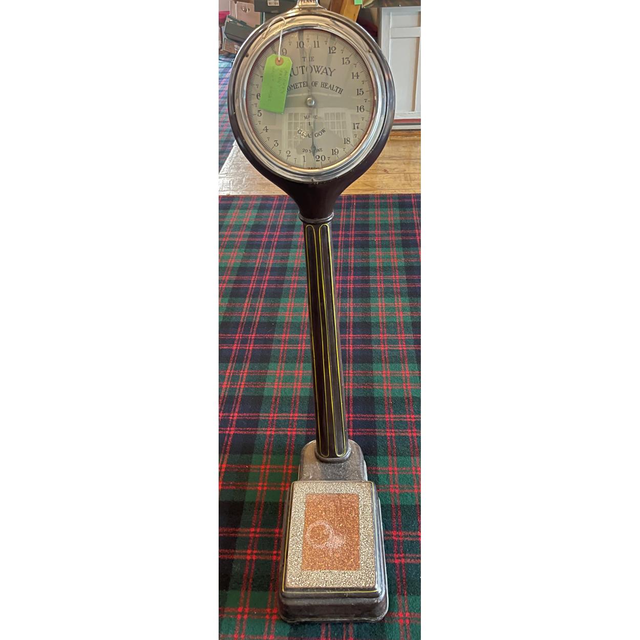 REMEMBER THESE OUTSIDE BOOTS THE CHEMIST in days gone by? A set of stand-on scales by AUTOWAY of Glasgow weighing up to 20 stone! The set includes a nice quality marble stand-on base