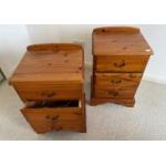 A PAIR of three drawer pine bedside drawers - in nice condition - dimensions 1ft square top x 18" height approx