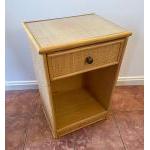 A bamboo style bedside cabinet with glass top and top drawer 18" wide x 14" depth x 2ft height approx - in nice condition
