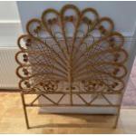 A PEACOCK fan-tailed rafia single bed head - 3.5ft tall x 3.5ft wide approx