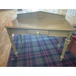 An ANTIQUE green hand painted table with central drawer on turned leg supports - 4ft width x 18" depth approx