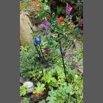 A TWIRLY garden border ornament with colourful metal butterflies and flowers etc - stands 2.5ft tall approx