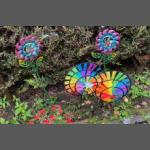FANS AWAY! - two colourful garden border fans and two taller flower form ones