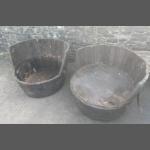 A PAIR OF OVERSIZED HALF BARREL garden seats - one will require a new roundel inner seat - both seats are ROBUST - there are loose cushions supplied which are not waterproof - OH LAZY SUMMER DAYS - the perfect 'sit-oot-erie solution! - 3ft diameter approx