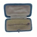 A super little Victorian velvet case with an unmarked yellow metal gents stick pin with amethyst centre stone.