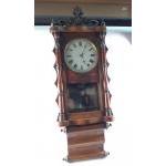 A rather lovely wooden cased, possibly German, large wall clock with beautiful applied marquetry and scrolled decoration. A fine example of the type with an internal mirror, 98cm long