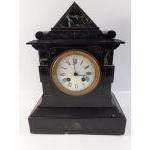 An impressive and solid black slate mantle clock. Stands 32cm tall. Age related cracks to the enamel face, marble in very good condition.