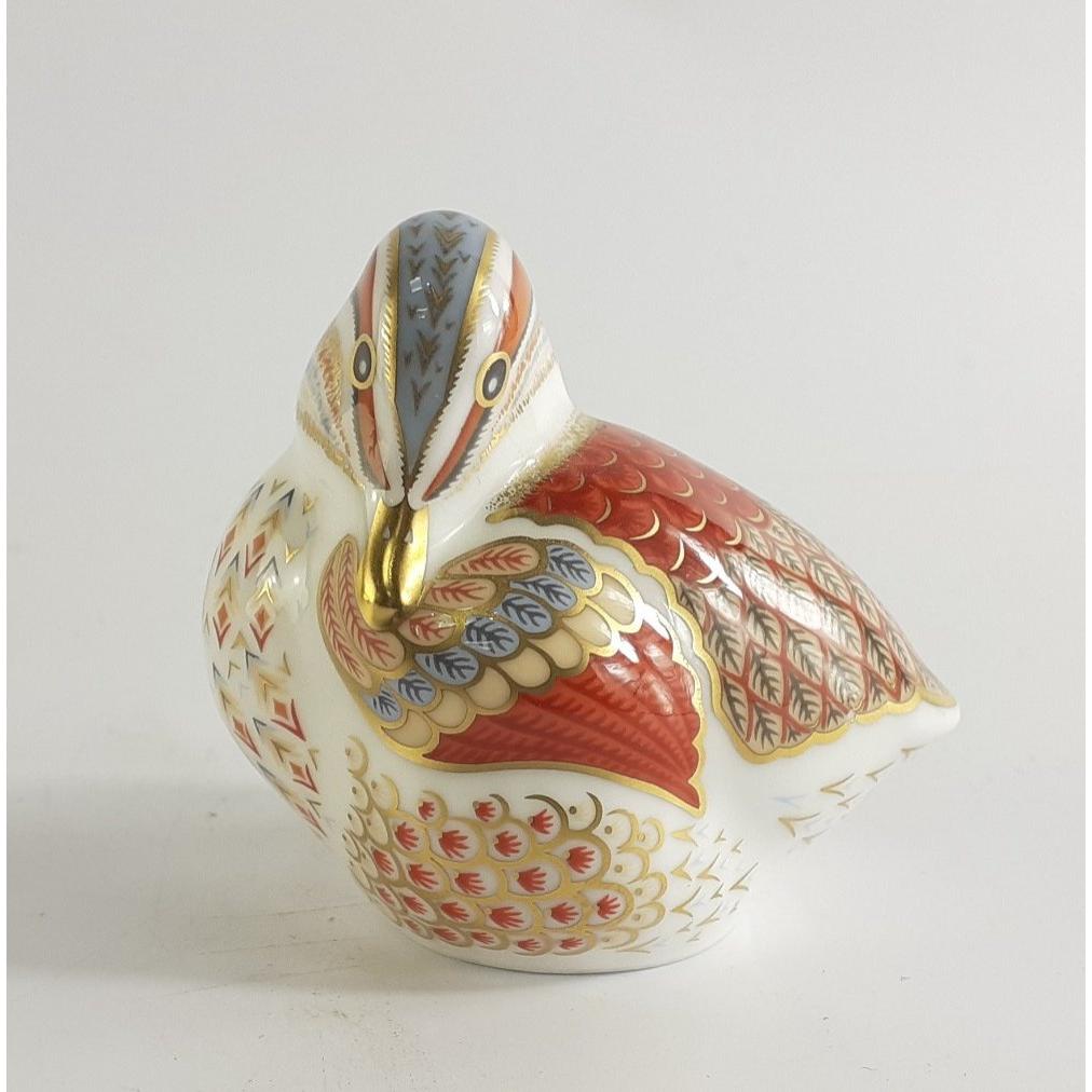ROYAL CROWN DERBY Gold Button TEAL DUCKLING signed Sam Fisher 2/12/2006