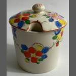 A vintage bright hand-painted floral patterned JAPANESE lidded pot 9cm tall x 7.5cm (No chips, cracks or signs of damage repair)