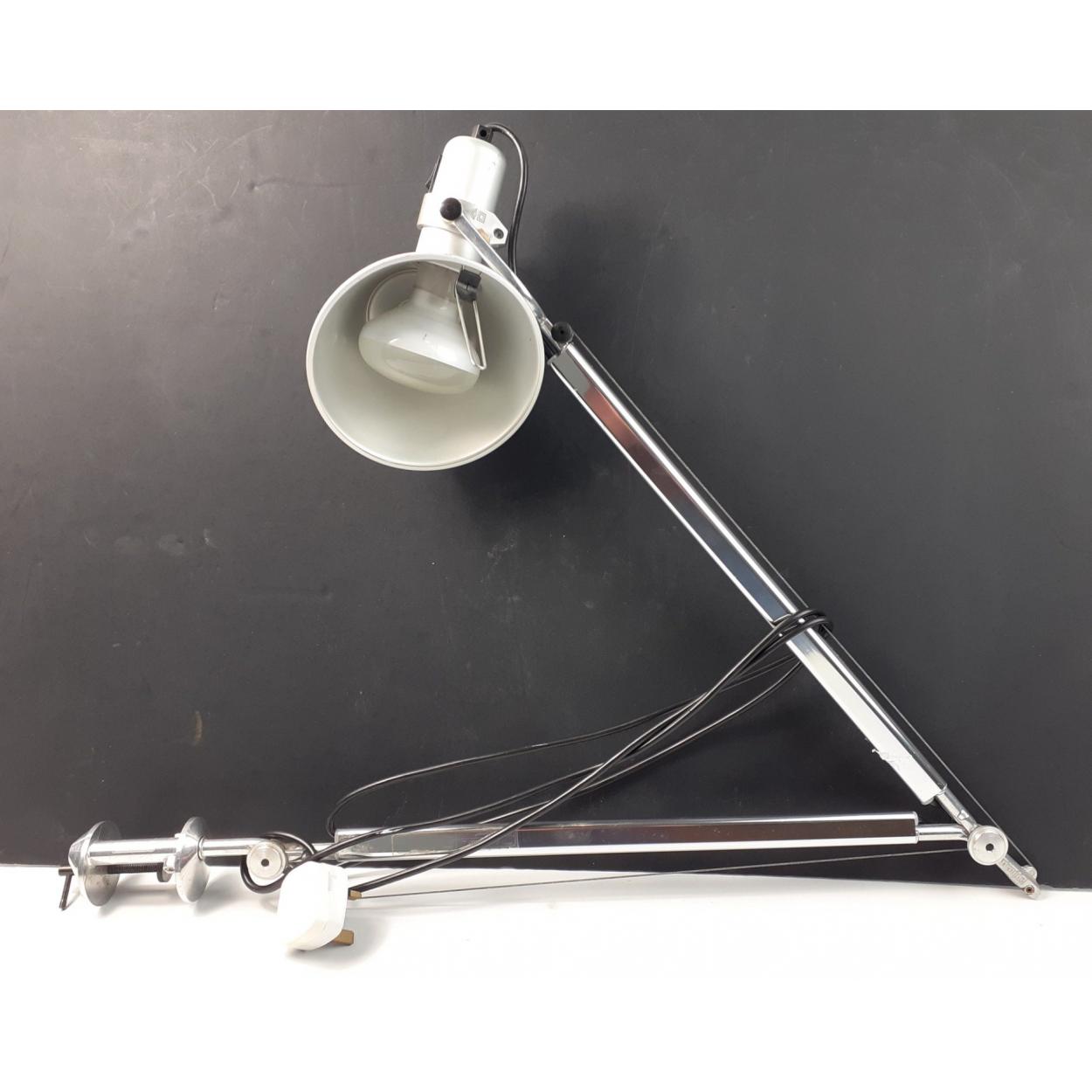 ITALIAN - A quality ANGLEPOISE table fixing lamp by ARTEMIDE of Italy- stainless steel with a trendy grey lampshade - potentially stretches up to 4ft approx