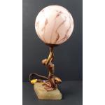 A stunning Deco style antique table lamp of a female spelter figure on onyx base holding a ball shade. A really attractive piece ! 40cm approx including shade.