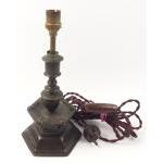 A vintage brass candle lamp 25cm tall approx, still retaining Bakelite 2 pin plug.