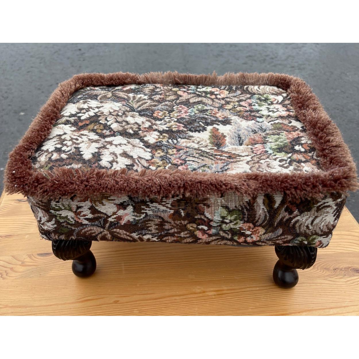 A nice wee fabric covered footstool supported on 4 small cabriole legs -18" x 10" surface approx