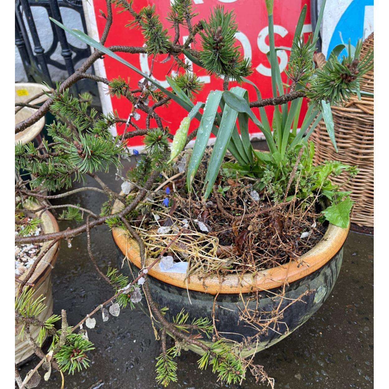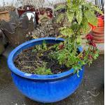 A VERY LARGE blue drip-glaze ceramic planter(frost free) 13" height x 21" diameter approx - comes with planting to get you started!