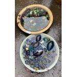 TWO CERAMIC large saucer dishes to go under ceramic pots -FILLED with colourful marble-like glass small orbes (I hope you like the water effect!) -approx 14" diameter