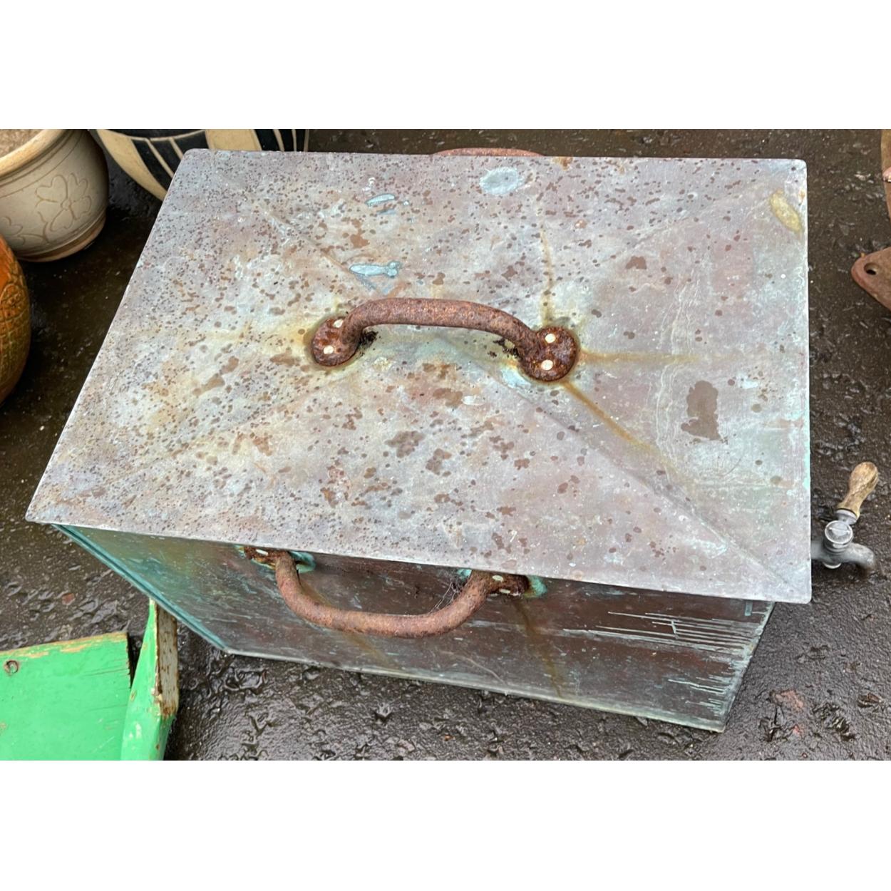 A vintage copper tank with lid and tap 18" x 18" approx