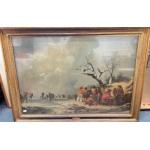 Very large framed oil on canvas VICTORIAN oil print winter lake skating scene Philip James de Loutherbourg RA (31 October 1740 – 11 March 1812), whose name is sometimes given in the French form of Philippe-Jacques, the German form of Philipp Jakob, or with the English-language epithet of the Younger, was a French-born British painter who became known for his large naval works, rural settings and his elaborate set designs for London theatres Painting Dimensions 112.5cm length x 77cm height - frame dimensions 140cm x 104cm approx