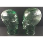 CLEAR THINKING! :) A pair of green glass decorative heads, male stands approx 26cm, the female, with 1920s flapper hair-style, stands approx 28cm.