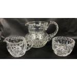 A crystal creamer and sugar bowl plus a real heavyweight jug (14cm tall)