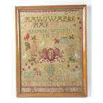 A framed sampler by Annie Wood, dated 1872, wool on linen, 46x36cm