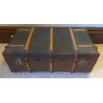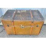WOULD MAKE A TALKING POINT COFFEE TABLE!! Vintage c1910 trunk with bentwood strapping